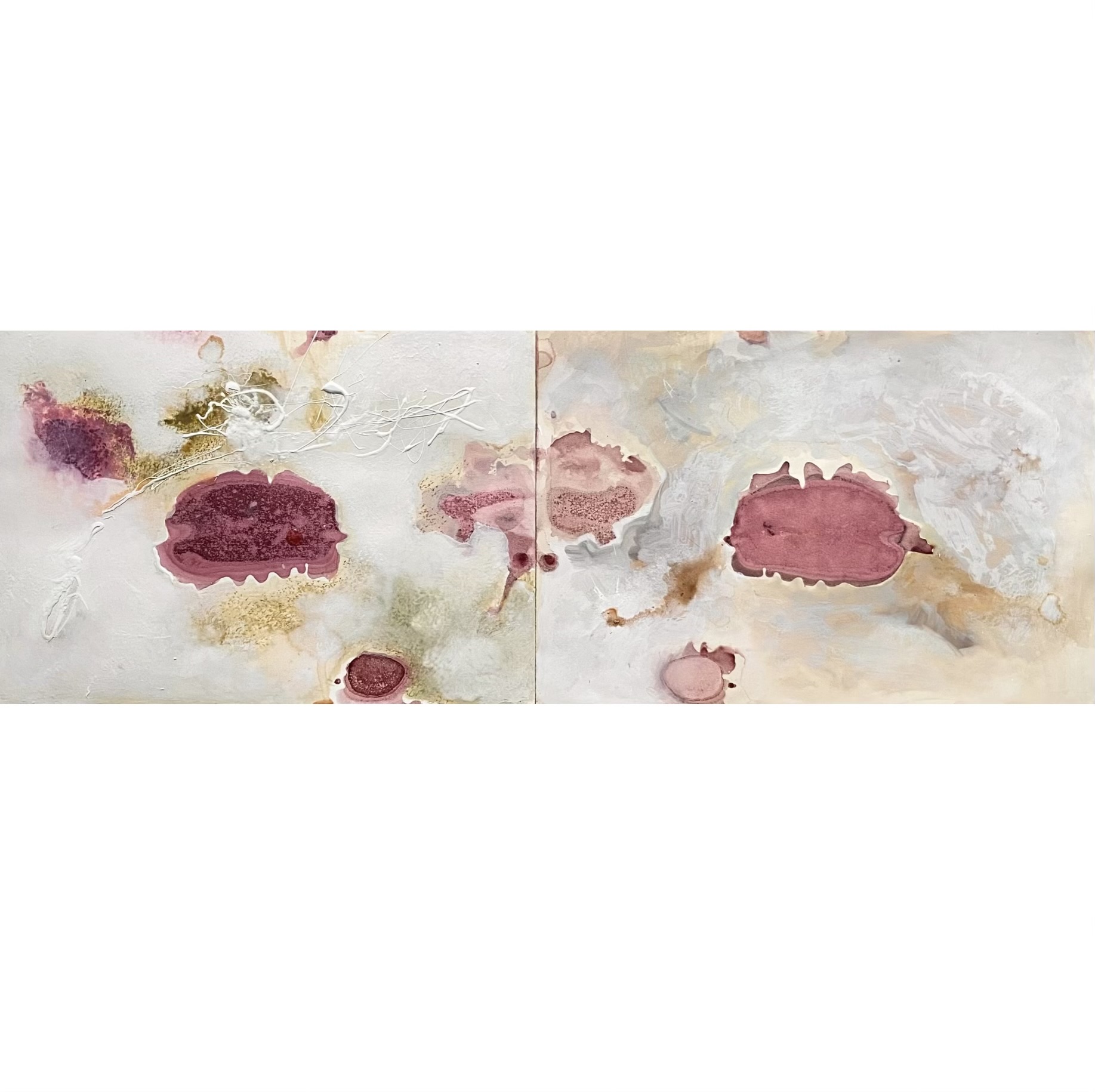 Kombinovaná technika na papiře. Nálada jednoho letního sobotního dne. Nedávno vznikl další obraz, který má jinou náladu a přesto k němu patří.